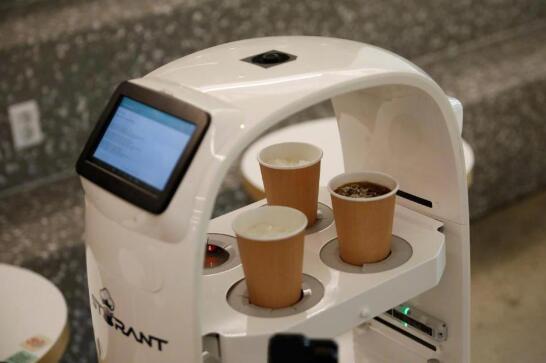 例如,在“ Storrent”咖啡店中引入的机器人服务员“PEANUT”,负责店内饮品配送,从而避免人员接触,提升咖啡店经营安全及效能,并带来更新颖的科技体验。