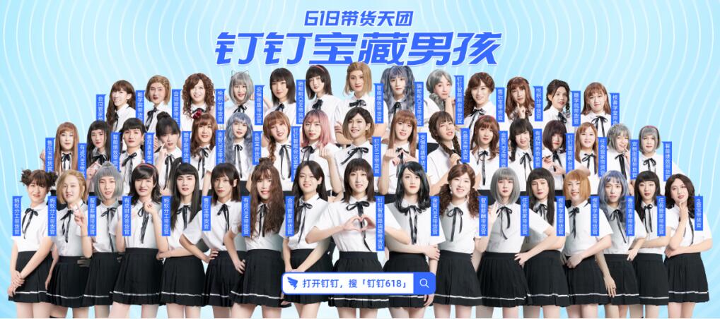 6月16日,钉钉官方微博发布视频,钉钉生态48名程序员为了给钉钉618带货,化身女装大佬在线带货。